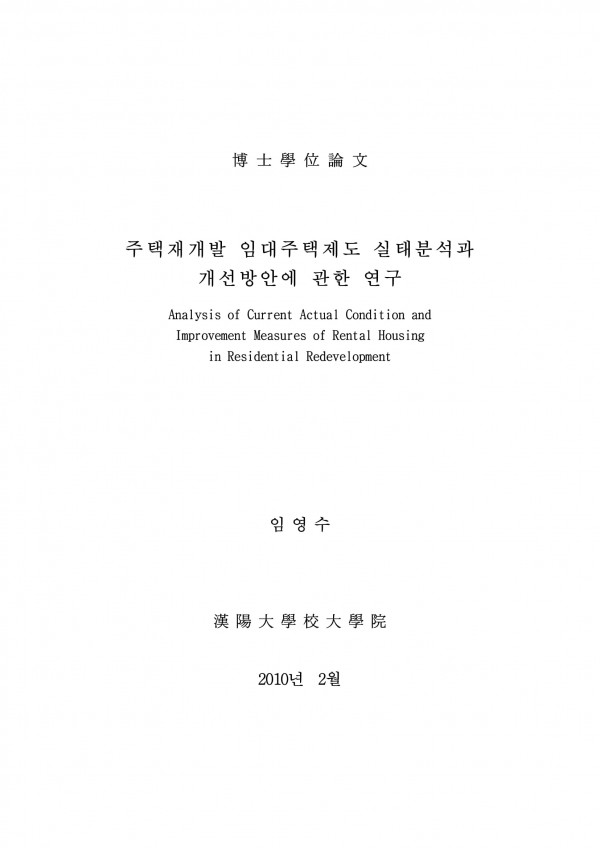 주택재개발 임대주택제도 실태분석과 개선방안에 관한 연구 > thesis