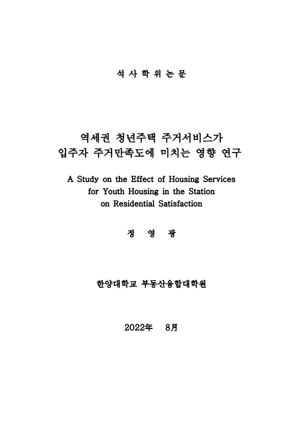 역세권 청년주택 주거서비스가 입주자 주거만족도에 미치는 영향 연구 > thesis_master