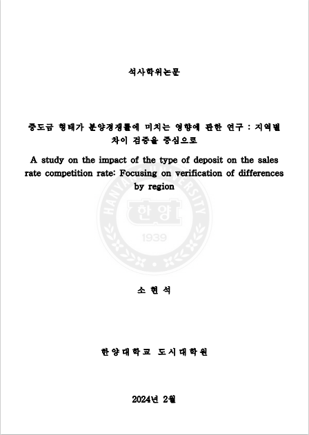 중도금 형태가 분양경쟁률에 미치는 영향에 관한 연구 : 지역별 차이 검증을 중심으로 > thesis_master